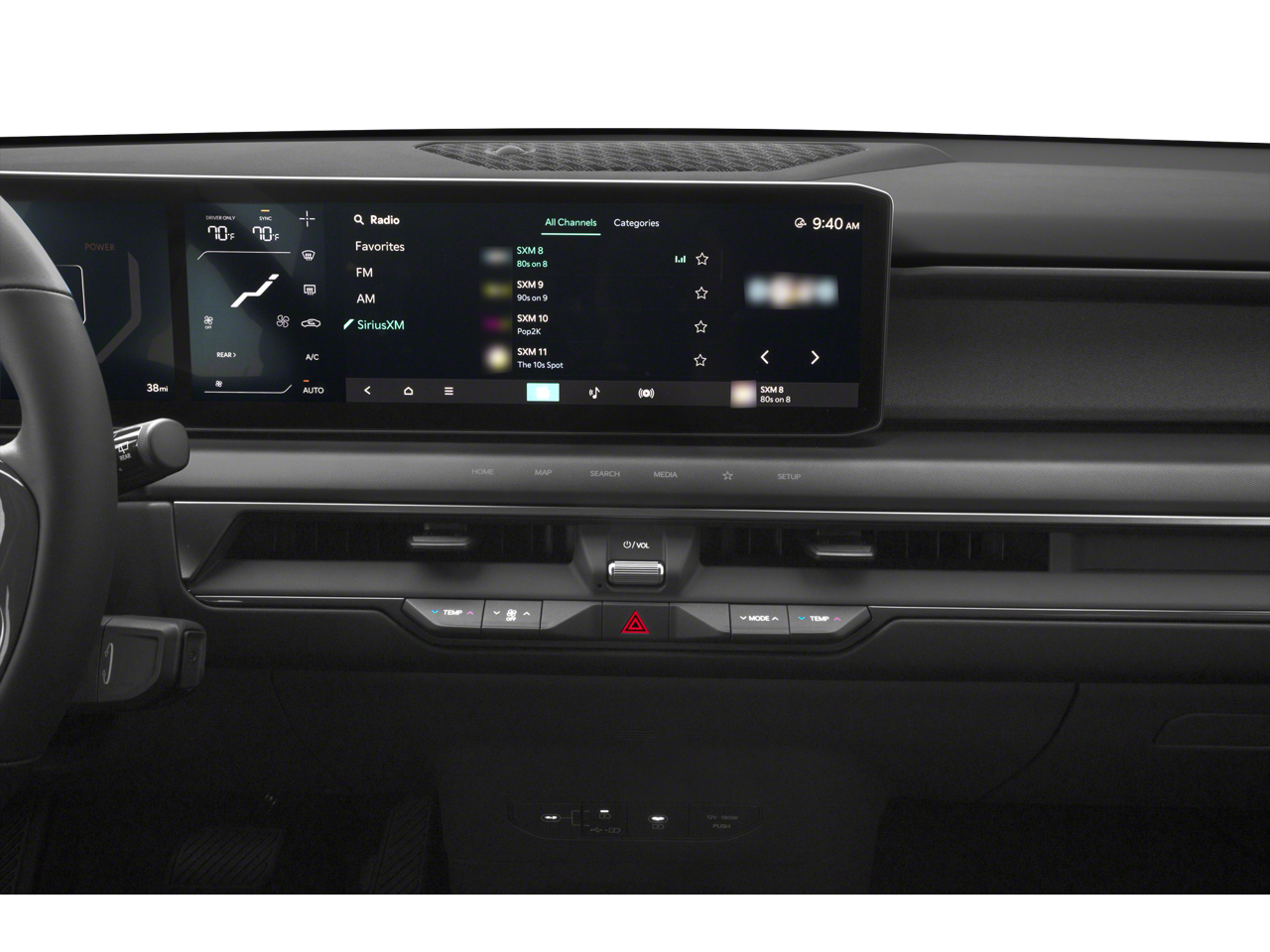 - Radio: AM/FM/HD Radio/SiriusXM -inc: 12.3" display, navigation, over-the-air updates (OTA), passenger talk, quiet mode, Android Auto, Apple CarPlay, voice recognition, Bluetooth® w/multi-Bluetooth function, Kia Connect, telematics, wi-fi hotspot, 8 speakers, amplifier and USB connectivity