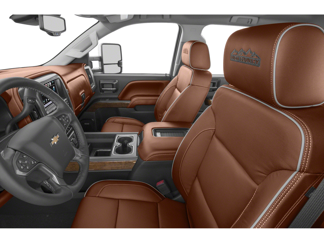 - High Country includes High Country brushed metal sill plate, (AN3) front full-feature leather-appointed bucket seats, (KB6) heated and cooled seats, (B58) color-keyed carpeted floor mats, (D07) center floor console, (UQA) Bose sound system, (PHF) 18" polished aluminum wheels on SRW and (RS7) 17" forged polished aluminum wheels on DRW, (QWF) LT265/70R18E all-season, blackwall tires on SRW and (QQO) LT235/80R17E all-season highway tires on DRW, (UD5) Front and Rear Park Assist, (VB5) body-color front bumper, (VT5) body-color rear bumper, unique chrome grille, (V76) Black recovery hooks and (CTD) cargo tie downs, dealer-installed (4)