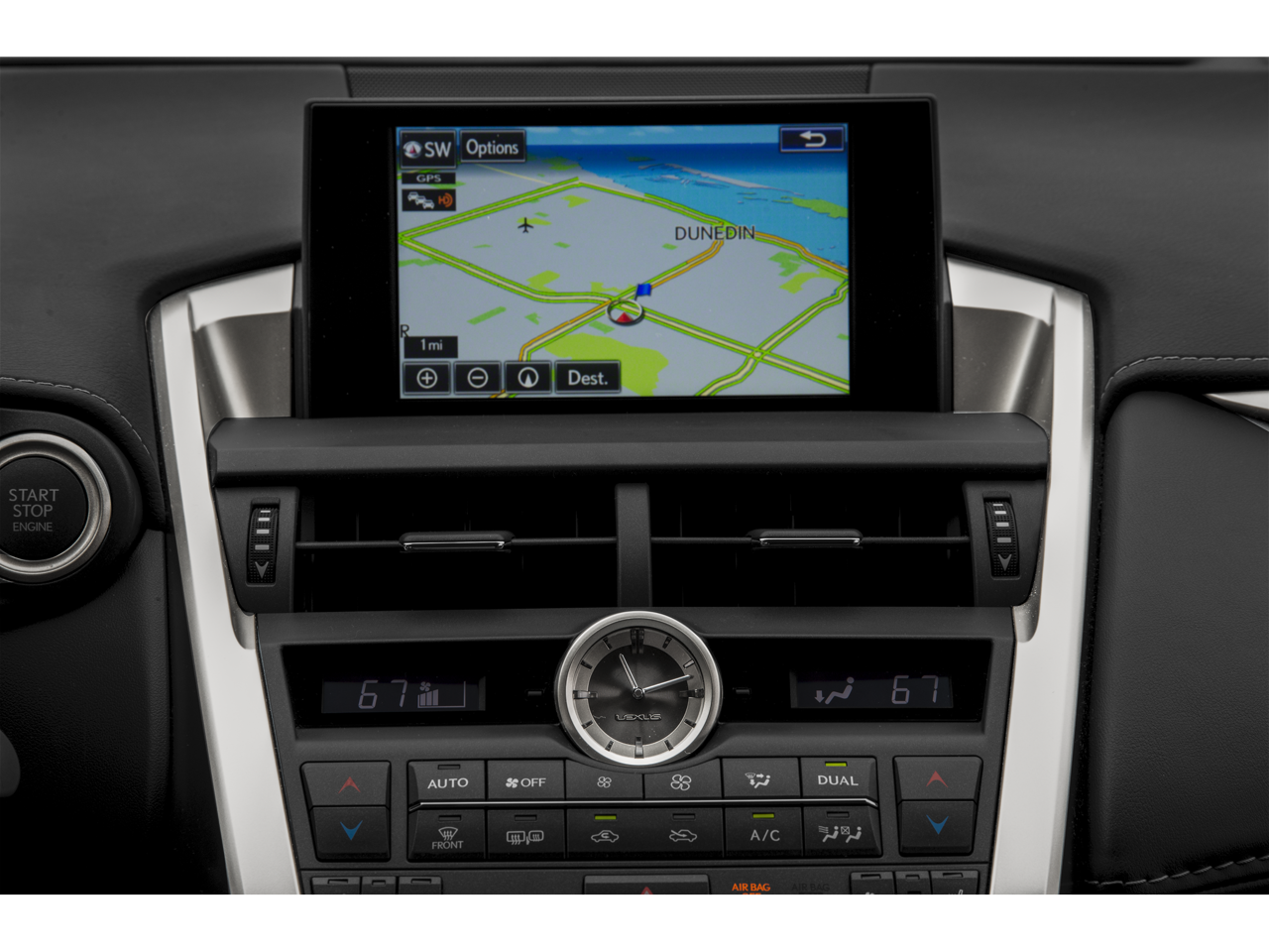 - Radio: AM/FM/CD Lexus Display Audio -inc: 8 speakers, Bluetooth® audio streaming from compatible devices and hands free, full digital power amplifier (class D), integrated SiriusXM Satellite Radio receiver (90-day All-Access trial subscription included), USB/iPod control, home screen can be divided into 1-3 sections (customizable - HVAC, audio, navigation), 7" screen, 3D maps, 3D buildings, my traffic routes, speed limit display on road travelled, ETA calculation improved, traffic detour preview, predictive traffic, MID data sharing, voice recognition, one-shot address entry, steering wheel control of onboard/offboard voice recognition, voice recognition guidance level, hint screens, Cache Radio w/ability to pause live AM/FM/HD Radio, hybrid data service, traffic and weather data provided via HD Radio (free while in HD Radio range), basic traffic maps, and weather forecast