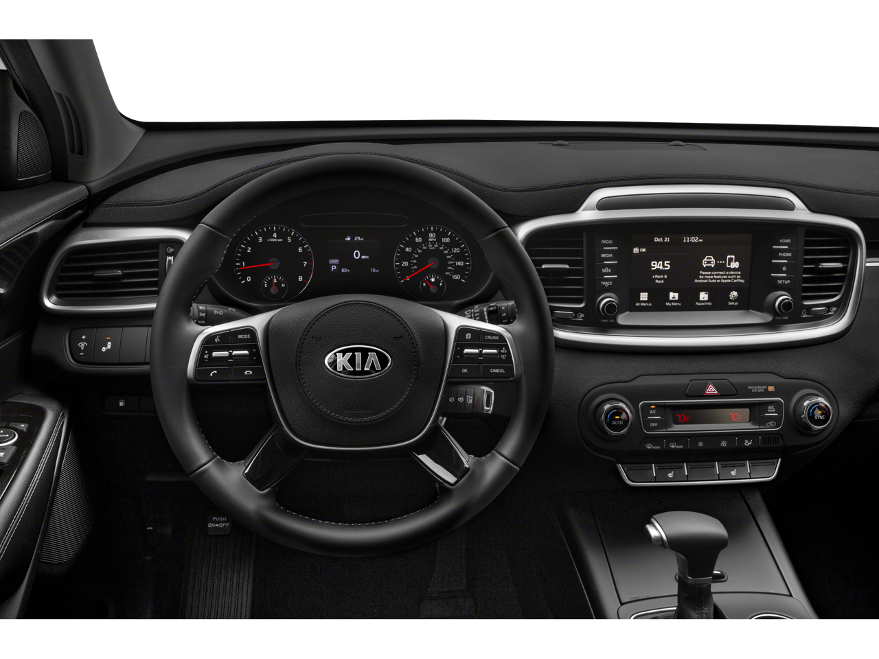 - Radio: UVO Play w/AM/FM/MP3 -inc: 7" touch-screen audio display system, Android Auto, Apple CarPlay, integrated rear-camera-display, 6-speakers including door-mounted tweeters, USB/auxiliary input jacks and Bluetooth® wireless technology