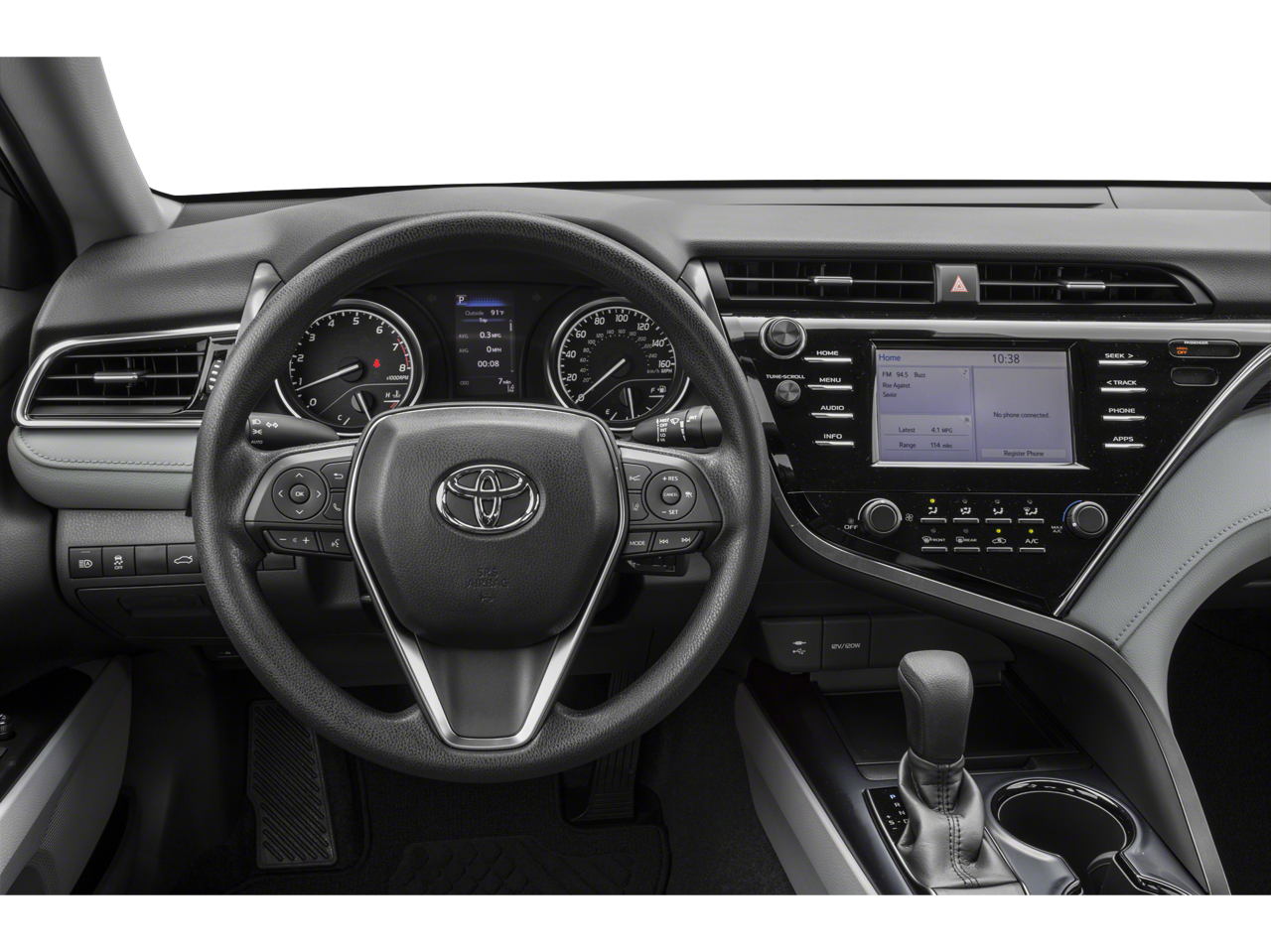 Inside, you'll find a wealth of premium amenities, including a 6-speaker audio system, Entune 3.0 Audio with App Suite, dual-zone automatic climate control, a power driver's seat, and a leather-wrapped steering wheel. The spacious cabin offers ample room for five passengers, while the 60/40 split-folding rear seat provides versatile cargo storage.