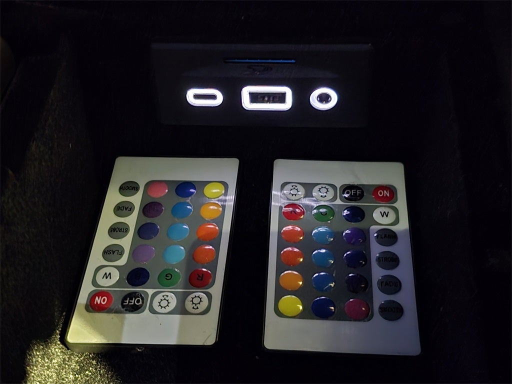 - Console, floor 2 covered cup holders, auxiliary power outlet, USB ports, auxiliary input jack and lockable storage