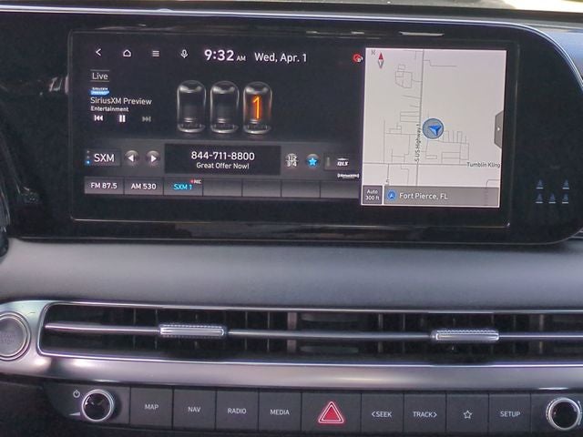 - Radio: AM/FM/MP3 Premium Audio System -inc: 630-Watts, 12.3" color touchscreen display, onboard navigation w/traffic flow including incident data via HD Radio (HERE), Over-the-Air (OTA) map updates, Harman Kardon audio system w/12-speakers, Quantum Logic Surround, Clari-Fi, SiriusXM, Android Auto and Apple CarPlay, USB, dynamic voice recognition, rear seat quiet mode, passenger talk (in-car intercom), Bluetooth® hands-free connectivity w/multiple device connection and Bluelink Connected Car System