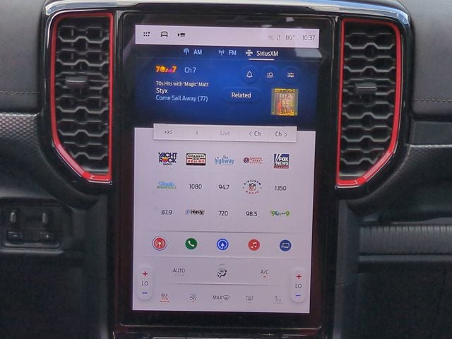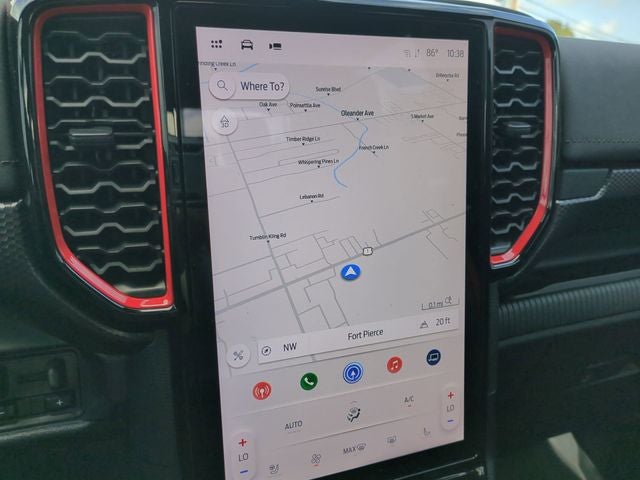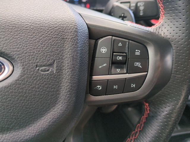 Inside, the Ranger Raptor offers a premium experience with its luxurious leather-trimmed heated front bucket seats, heated steering wheel, and the exceptional B&O Sound System by Bang & Olufsen. The intuitive SYNC 4A with Connected Built-In Navigation keeps you connected and in control, while the automatic climate control and rear window defroster ensure your comfort in any weather.