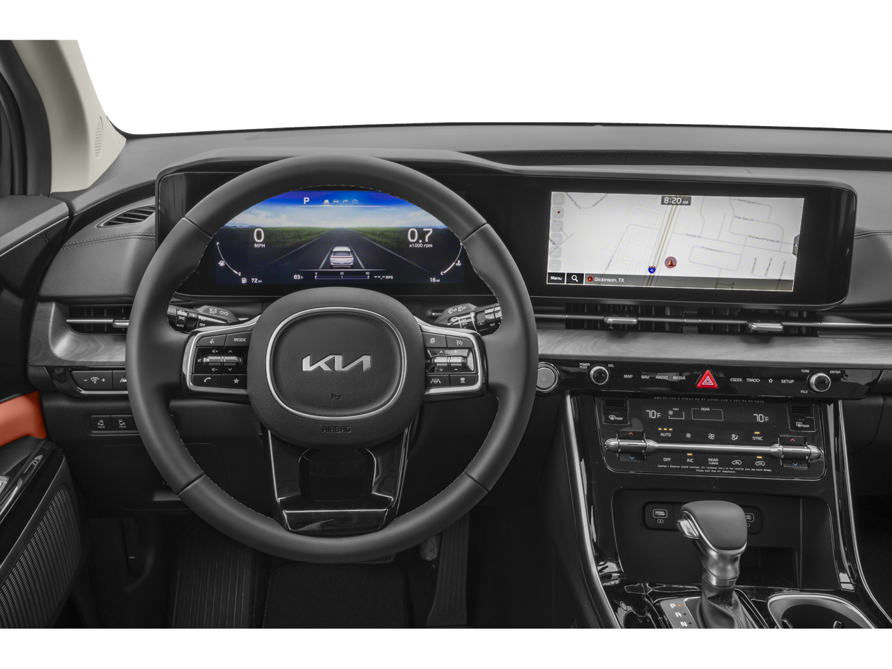 The cabin of this Carnival SX is a haven of comfort and convenience, with amenities like dual-zone automatic climate control, heated and ventilated front seats, and a premium audio system with Apple CarPlay and Android Auto integration. The spacious 8-passenger seating configuration and versatile split-folding third-row seat provide ample room for your growing family and their cargo.
